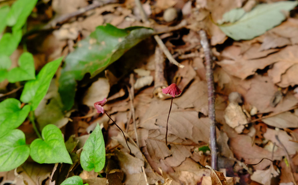 途中に、キノコがたくさんあり、つい藪の中に・・・。
