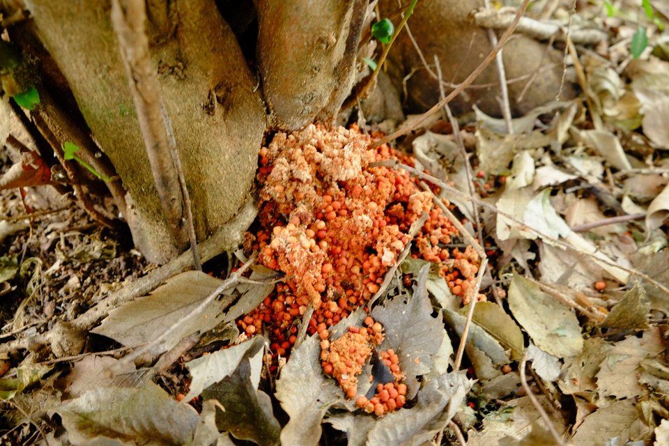なんの動物かわからないけど、たくさんの木の実のようなものを