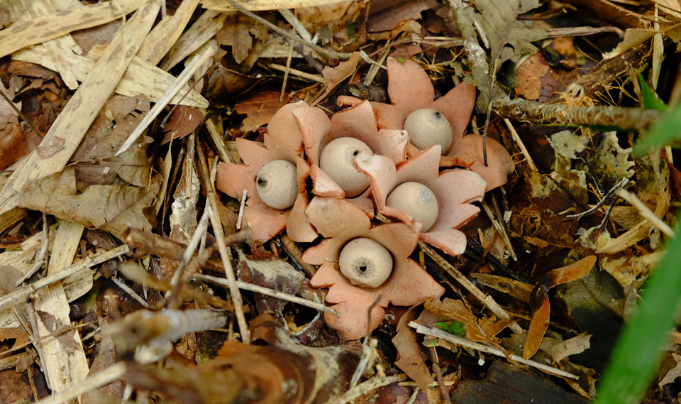 この時期の森林と言えばキノコ。初めて見るキノコですが、ツチグリに似ている