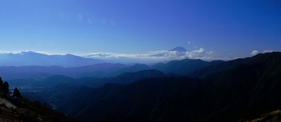 二ノ搭付近から見る表丹沢の山並みと、富士のある景色。(逆光)