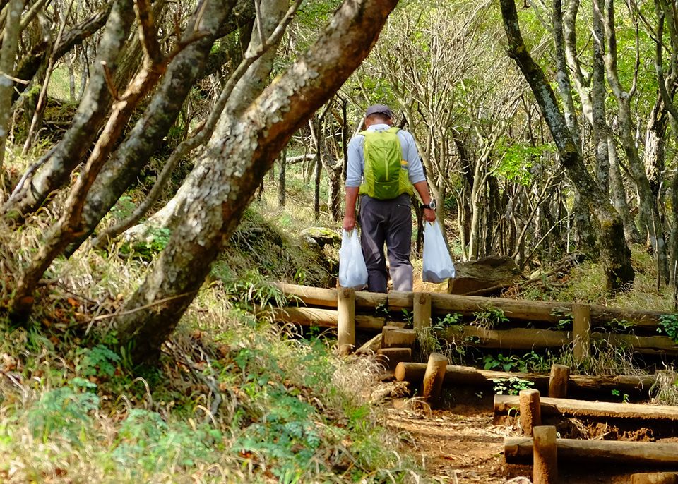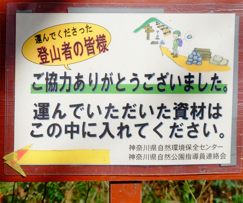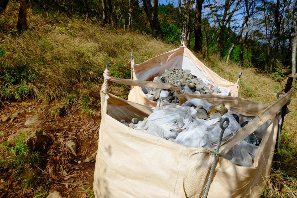 登山道の途中にこんな大きな袋が数か所・・中には登山者が運びあげた石がいっぱい。