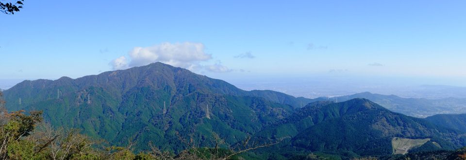 裏側には大山、標高1205.2メートル(関東平野の西に最初に見える山)