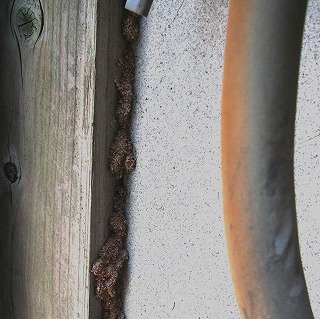 家の外の壁に、アリの道(蟻道・ギドウ)が吹き出し、