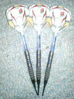 フライト(ダーツの羽)の柄はラグビーのイングランド代表(03ワールドカップを優勝した時のユニフォーム)