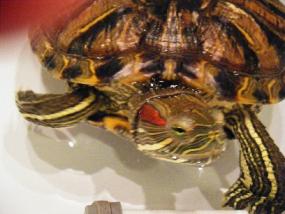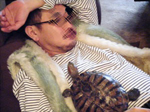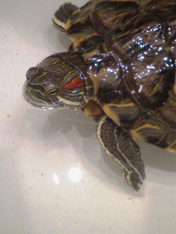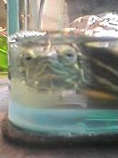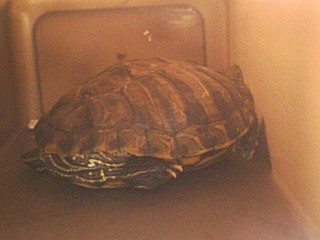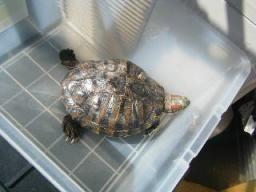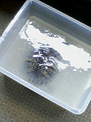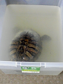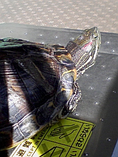 最近、雨も多いし、かなり夜は冷え込んできましたね。ブログお友達のカメちゃんも、次々ヒーターがセットされている模様。。さて、二年前の話・・・ふと水槽を見ると、モヤモヤとゲーナーの薄皮みたいなのがいっぱい浮いてる。表に出して遊ばせた後は皮膚が乾燥して水槽に入れるとふやけて皮が浮くのはわかるけど、尋常な量じゃない。見ると、ゲーナー自体も、なんか全体的に白っぽい・・・何ぃーーーっ! と思って、ハッと水槽に手を当てるとあっつ、熱っっ!! 温度計を見たら40度こえてるよぉ~~急遽、ゲーナーを取り出し、一気に水かけるのもヤバそうなんで外気で冷ます事に・・・もう、甲羅もヌックヌクやし、皮膚も白っぽくなててほんと、間一髪でした。あのまま、あと一時間でも気づかなかったら・・・(スッポン鍋??)想像したくもアリマセン。原因は、サーモがきかず、どんどん水を温めつづけていた様でした。特に後遺症もないゲーナーでしたが、あの日の事を思い出すと、今でもゾッとします。ごめんよ。 ゲーナー、、 熱かったよねぇ~~
