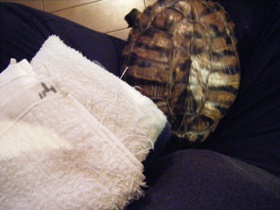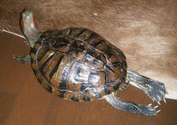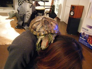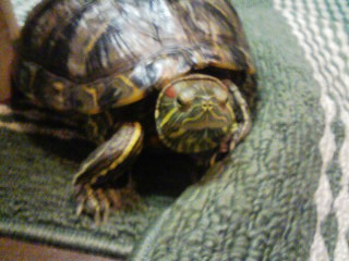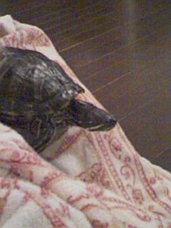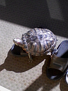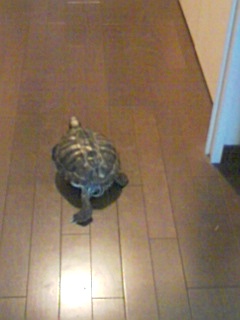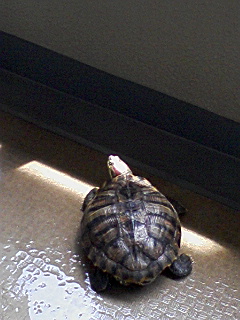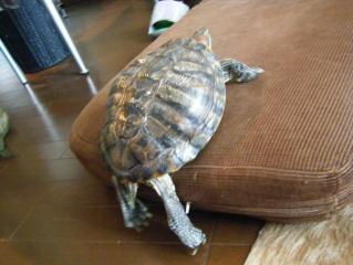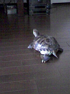 朝、えさをあげようと思ったらいつものヒーター、、キーック!! でヒーターがひっくり返っていた。またぁ~、と思ってヒーターを直そうとしたらめっちゃ水が冷たい。 何ぃ~これ?! と思ってヒーターの接続をみたんだけどわからず・・・なんか、ゲーナも動きが鈍く、冬眠モードになってる。甲羅もなにもかも、冷え冷えのヒエェ~~(笑)急いで抱き上げ、タオルにくるんで私の体温でしばらく保温。洗面所のボールに適温のぬるま湯をためて、その後放った・・・動きも活発になり、えさもバクバク!すっかりご機嫌さん。 いつものゲーナに戻りました。カメだから、水冷たくても大丈夫かもしれないけど、心配したよぉ~いつからヒーターは止まっていたのかしらん?? 可哀想な事をしてしまいました。今はベランダ生活から、再びリビング生活に戻ったゲーナです。冬場は一緒にリビングで過ごそうねっ♪ ゲーナ。。