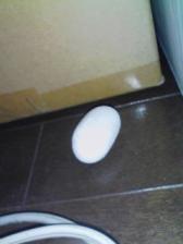 なんと、なんと!旦那の仕事場の隅で“卵”発見!!少し前のものと思われ・・・いつ産み落としたんだろ??んで、5日後の今日・・・! またまた、クローゼットでもう一個発見!!きょとんとそばにいるゲーナさん。まだ温かい・・・ヌルヌルしています。(ちょっと生臭い)きれいに洗って、太陽に透かしてみました。もちろん何も見えないかぁ~~キレイな薄いオレンジ色です。けど、やっぱり産んでたんだね。。 ゲーナ・・・