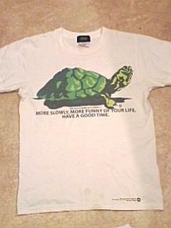 ゲーナおかんのお気に入りTシャツ!見事なカメTでしょ。。“be SLOW”・・・であります