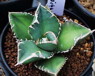 アガベの斑入り種と玉扇イナバウアー 2025.12.03