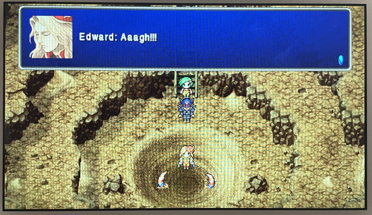 「うわあ!」ギルバートといえばこれだ。何かにつけて言う。写真の通り、英語では毎回微妙に異なる。そして、名前に注目。ギルバートではなくEdward、エドワードという。ならば本来のエドワードは……登場するまで話を進めればわかるか。というわけで、英語でFF4。今回が第3回になる。前回FF4を英語でやった時は、ゲーム内のコンフィグで言語を設定した。しかし、この方法ではオープニングは日本語から変更できない。今回は、Vita本体の言語設定を英語に変えた。これならオープニングから英語で見ることができ、各キャラの名前も最初から英語で入る。対して、前回はネミングウェイに頼んで名前を英語で入れ直していた。だが、実は6文字までしか入らない。そのため"Gilbert"が入りきらず、仕方なく"Glbert"にした。「うっ ぐぺぺぺぺーっ!」FF4三大断末魔のひとつだ。けれど、この手の台詞は他言語にすると本来の味が出ない。やはりゲームも小説も、作り手の言語が一番だとどんな作品でも繰り返し実感することだ。「ば く は つ するーーー!」これも翻訳すると味が出ない台詞だ。前回FF4をプレイした頃、リアル事情で2年近くも胃痛が続いた。どうやら、Blackの胃にマザーボムが住み着いたらしい。そして、今もまだ去ってはくれない。ことあるごとにこのマザーボムは起きて、膨れ上がり爆発するというわけだ。ああ、今日もまた胃が薄くなっていく……。英語版:「では、恐れ入ってそなたらの助けを借りよう」日本語:「かたじけない、助太刀願えるか?」今回まともな台詞が全然無いので、最後にひとつくらいは。世界に散らばる4つのクリスタルを集めんとするバロン王国の、次の狙いはファブール。ホブス山で会ったモンク僧のヤンとともに、一行はファブールに急行する。【英語でFF4】#1 3/22 オープニング#2 3/29 ミストの洞窟~カイポ地下水脈#3 4/05 ダムシアン~ホブス山#4 4/12 試練の山#5 4/19 試練の山~バロン城下町#6 4/26 昔の水路~バロン城#7 5/04 トロイア~ゾットの塔#8 5/11 ドワーフ城#9 5/24 ドワーフ城・開発室#10 5/31 バブイルの塔・1回目#11 6/07 エブラーナの洞窟#12 6/15 バブイルの塔・2回目#13 6/29 封印の洞窟~ミシディア#14 7/12 月の民の館~バブイルの巨人#15 7/29 月の地下渓谷#16 8/07 ラストバトル~エンディング#17 8/12 総括First updated 2025.04.08 08:24:03