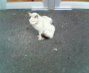 カメラを向けると、しかめっ面になるニャー様ですが、 珍しく可愛く撮れました 右目の緑・左目の青がちゃんと見えるかな? (ちなみにニャー様が踏んでるのは、 ウサハナとキティの抱き枕・笑)