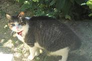 郵便局に行く途中で、野良猫を発見 近付いたら、ものすごく警戒されました、 ごめんね・・・