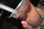 さて、本日はお兄ちゃんとドライブデートです まぁ、GWなんで覚悟はしていたのですが、 うんざりするくらいの車、車、車・・・ 宮原のSAについてから、さらにうんざり。 とにかく、人、人、人・・・ (とくに女子トイレの行列! 駐車場まで並んでましたからねー) 第一日曜日って、2割引なんですね 小腹がすいたので、 お兄ちゃんにいきなり天を買ってもらいました (お兄ちゃんは辛子蓮根を購入) サツマイモを巻いたてんぷら(さつま揚げ)ですが、 正直、別々に食べたほうが美味しいと思います 冷めてたしねぇー・・・。 写真撮る時に、「 巨 根 ★ 」 ってやったら、お兄ちゃんに怒られました(笑) (下に写ってる緑の花柄は、私のワンピース)