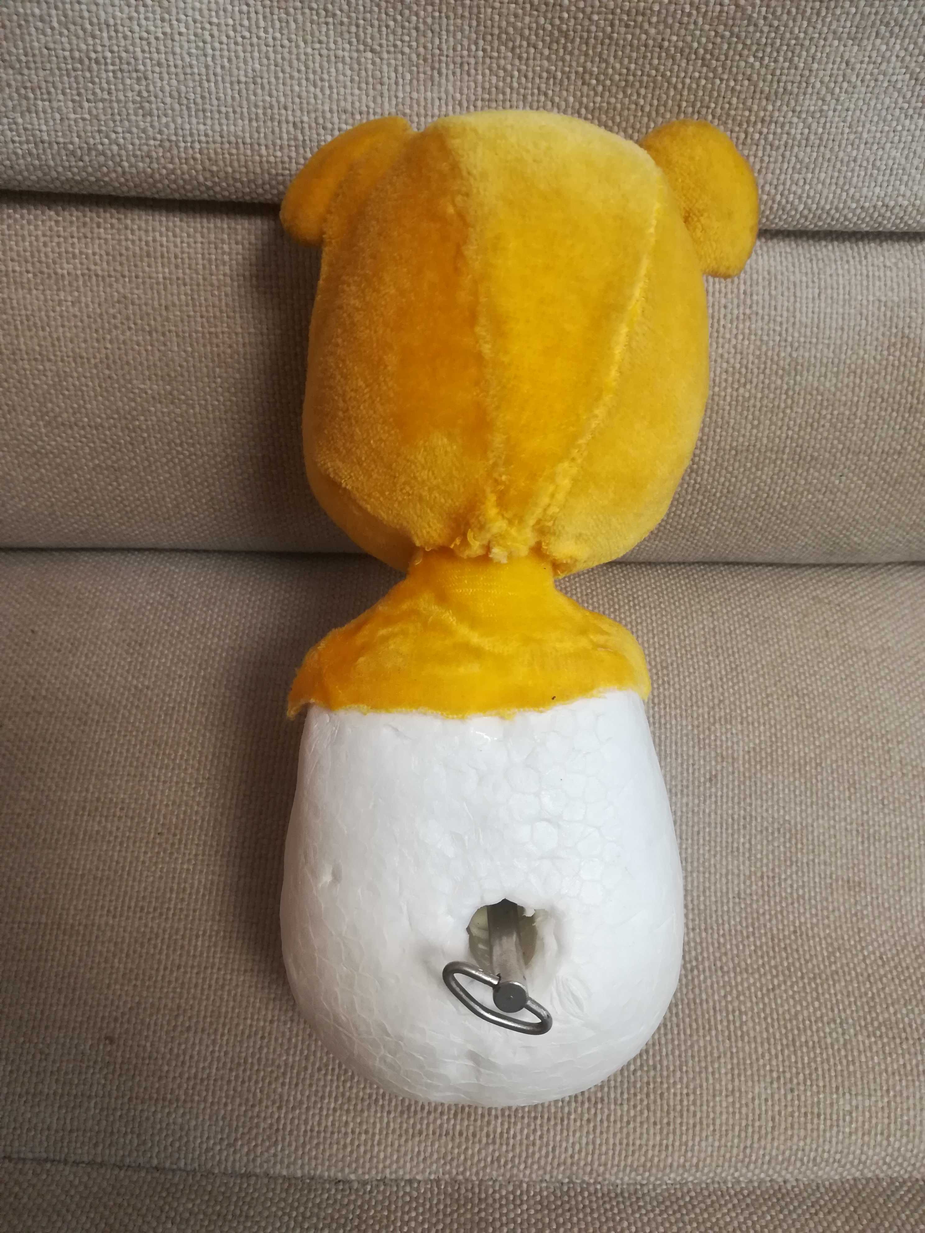 肩の部分の布を木工用ボンドで接着し、頭部を縫製。