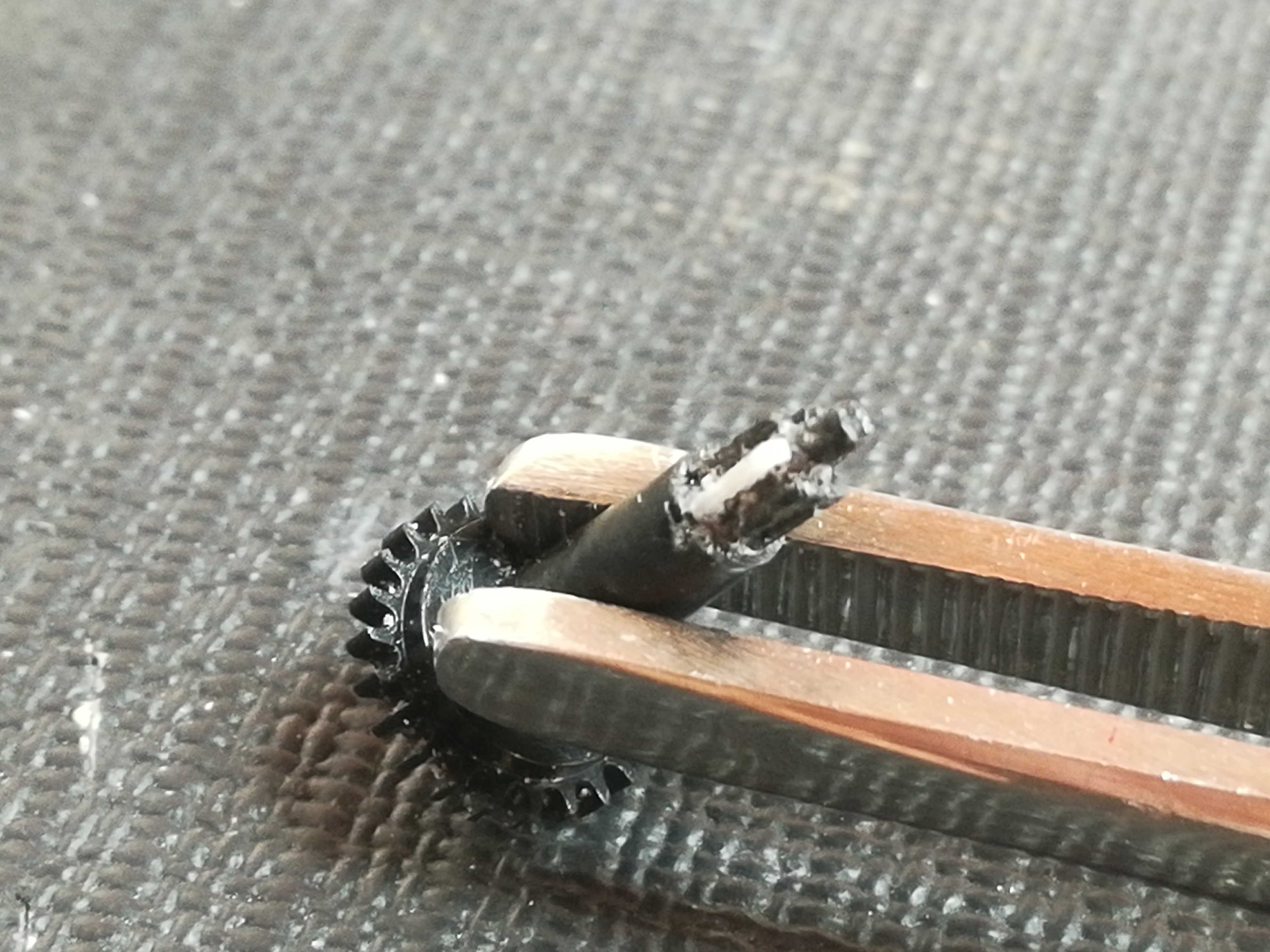 上の写真は作ってる途中のもの。最終的にはこの半分の薄さにまでなって、実際に歯車を組み合わせると全く問題ない動きを見せるようになりました。