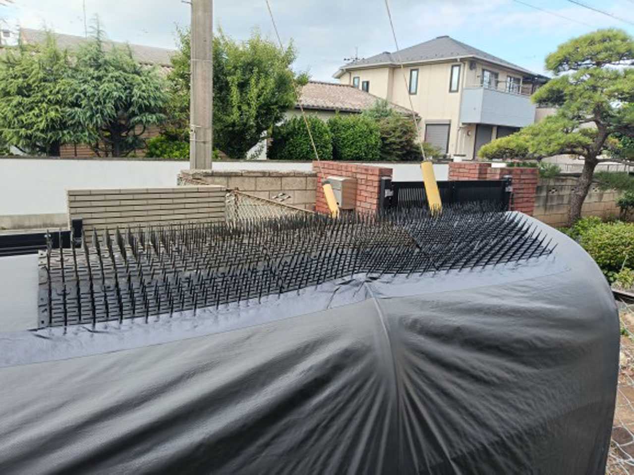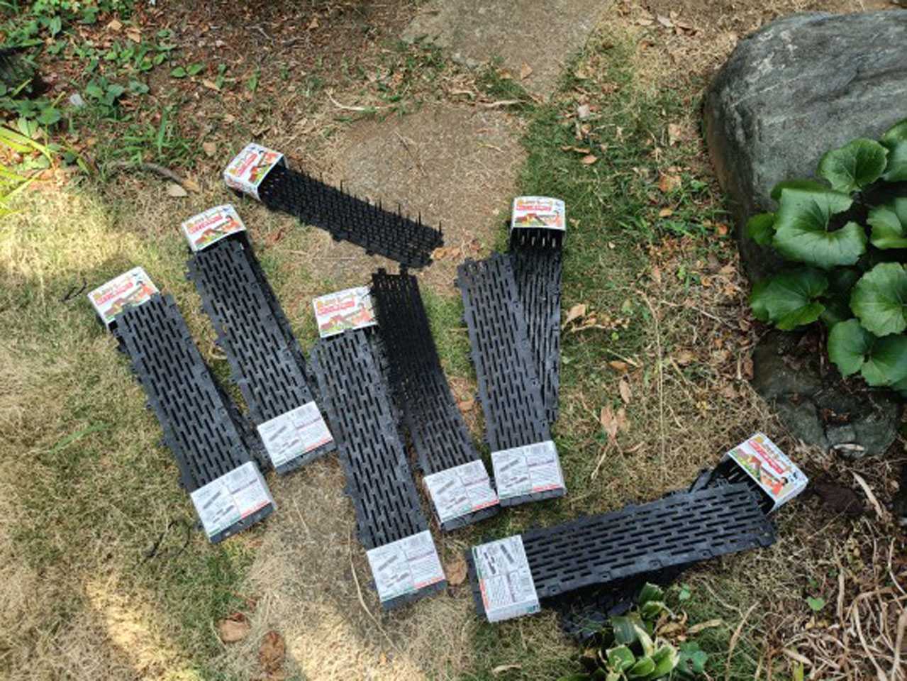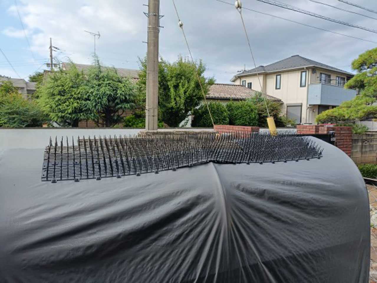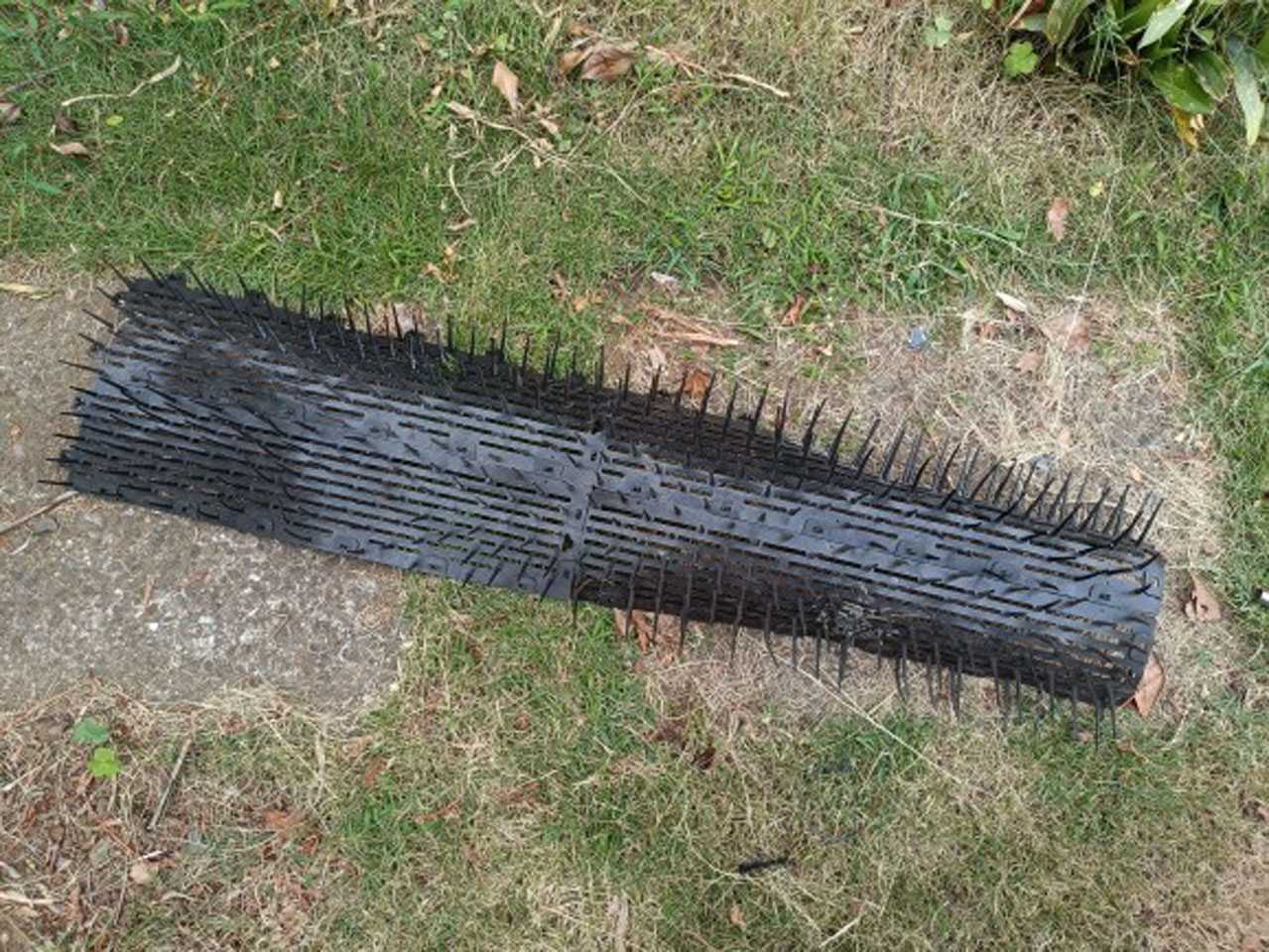以前、鳥が枝に止まらないように庭の木の枝に括り付けていたシート(棘付き)です。