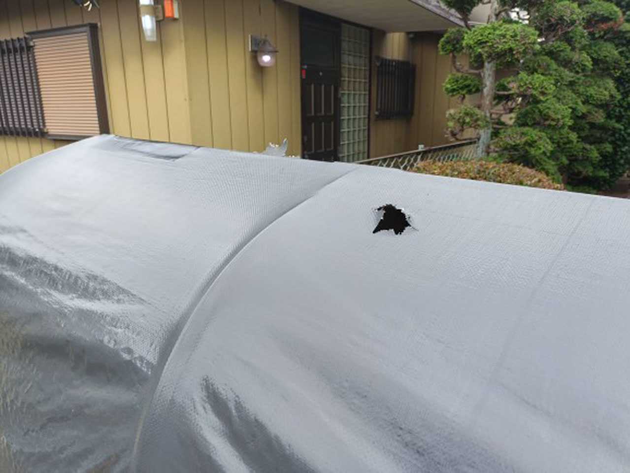 テントやタープ補修用のテープで穴を塞いだ ​のですが、穴を塞いだ2日後・・・