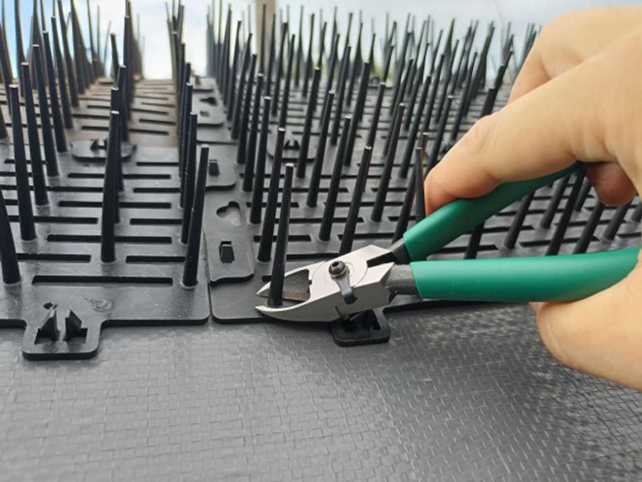 テープで四隅を固定するための貼り代を確保するため、一番外側の針をカットします。