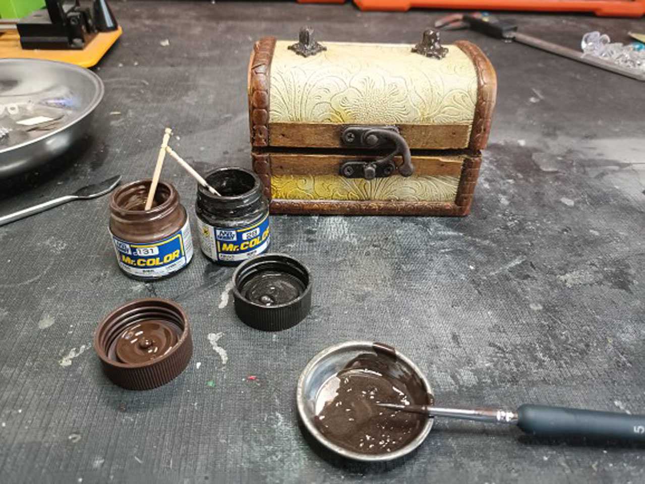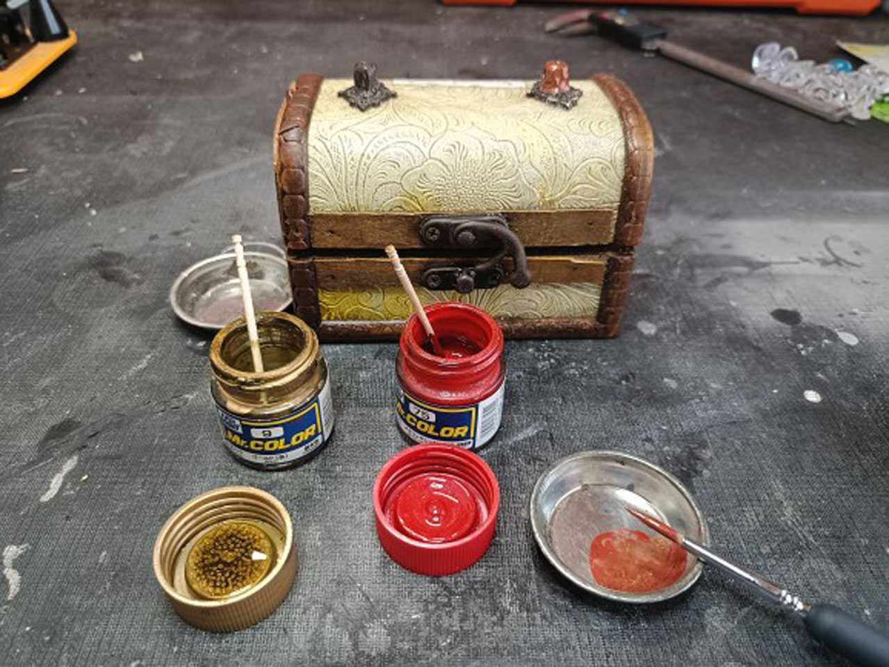 メタリックレッドとゴールドを混ぜた色で塗装。