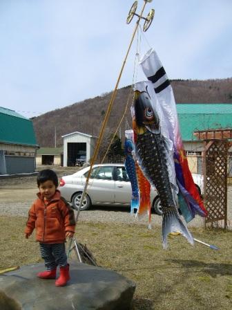 気が付けば一ヶ月前なので・・・雪もなくなったし、鯉のぼりを出しました!なぎなぎチビさんも嬉しそうずーっと「しゃかな(魚)すいす~い!しゃかな~しゃかな~」と叫びながら周りをぐるぐる回ってました。↓お魚捕まえちゃったよ!↓寝藁返しも手伝ってくれました。なかなかさまになってるでしょ?今週末は種付けが重なりそうクッキーもそろそろ産みそうだし。