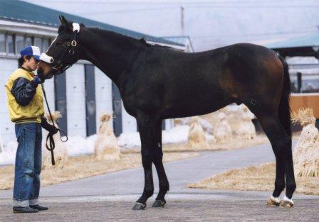 なにかとあわただしい毎日なのですが・・・今日も忙しかった!まず午前中JRA育成馬展示会があり、昨年セリで買っていただいたミスイースターの2004を見に行ってきました。とにかく寒かった!冷たい風が吹き付ける中じ~っと待って見ているのはかなりつらかったですイースター2004はすっかり大きく成長して、とても立派になっていました。全部で80頭ほどいたのですが、他の馬と比べてもいい形になっていましたよ。24日に中山競馬場で行われるブリーズアップセールに出される予定です。展示会の様子↓そして帰ってきたら、ビギンがお産!またまた女の子・・・。はぁ~・・・今年はほんとに牝ばかりだわ。元気な子だからいいか!この子も葦毛になりそうです。明日はトロピカルメイクの種付けです。キャプテンスティーブがお相手です。でも白老まで3時間以上のドライブなんですよね~。さらに9時の種付け予定だけど、ふつうに2,3時間待つらしい。種付けさせるのにやたら時間がかかるので有名な種付け所なので、場合によっては帰ってくるのは夕方から夜になるかも?!という予測のつかない予定なのです。せめて1回で受胎してくれないと参っちゃいますよ~。
