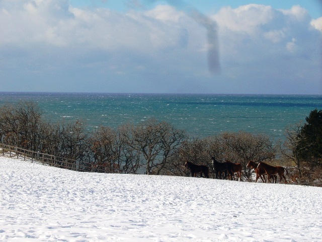 先週のレース結果は・・・あえて着順は書きません ちょっと残念でした でもまだこれから。今年も始まったばかり。気を取り直していきましょう! 今週はマルブツイースターとダイメイザバリヤルが特別登録してます。マルブツイースターは?ですが、ダイメイザバリヤルは出走できると思います。楽しみに週末を待ちましょう。最近レースのことしか書いてなかったんで・・・たまには写真でも。まずは久しぶりに分場へ行ってみました。冬の分場は寒いけれど晴れた日は海がきれいで景色がとってもいいですよ。そして冬の間の仕事のひとつ。まきわり。夏の間に暴風などで倒れた山の木を、切って薪にします。頑張る従業員くんをパチリ