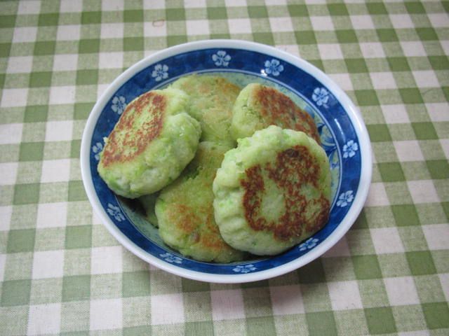 先日作ったずんだ餡をアレンジ。塩を効かせて、牛乳で少し湿らせたパン粉を混ぜて、団子にしました。それをフライパンで焼いたら、ずんだハンバーグの出来上がりです。枝豆の香りがなかなかいけます。実はこれ、砂糖と間違えて塩を多く入れてしまったことから生まれた新メニューなんです。転んでも、ただでは起きません!