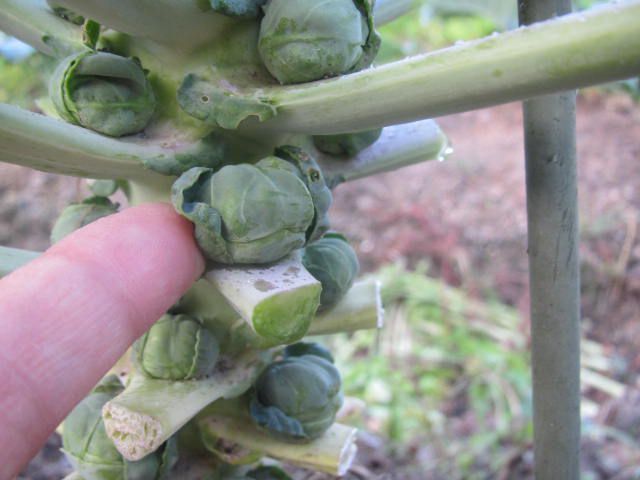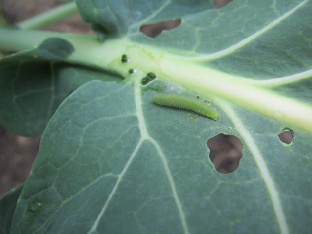 芽キャベツの葉っぱがかなり喰われているので、注意深く見てみると…。いました、アオウジ。毎年のように育てきた芽キャベツですが、こんなにアオウジが付いたのは初めてです。植え付け直後に殺虫剤を使うことはあっても、この時期にこんなに虫が付くとは…。今年初めて施したキャベツ農家直伝の肥料がよく効いて、この時期にしては大きく育ちました。その代わりに、虫が好むような状態になったのかも知れませんね。