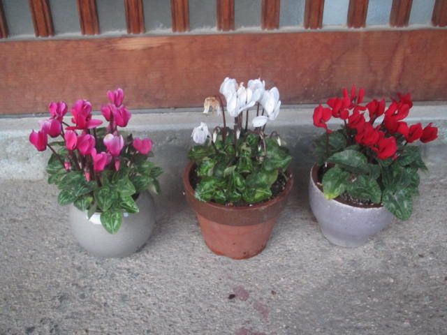 母がガーデンシクラメンを3鉢ももらってきました。種苗会社に勤める親類がいる人がくれたそうです。枯れたり黄色くなったりした葉っぱと花茎を取り除いてから、新しい鉢に植え付けました。鉢は不揃いですが、一応花の色は考慮しました。白は花びらに傷みがありますが、すでに種子ができているようです。もう少し種子ができるかも知れないので、枯れつつある花も念のためにおいておきます。↓ピンクのシクラメンはこの鉢に植えました。植木鉢 おしゃれ シンプルポット MM018-100 3号(10cm) / 陶器鉢 白 黒 丸形 軽い価格:1026円(税込、送料別) (2017/11/30時点)