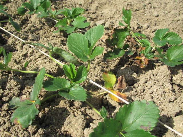植え付けから9日が経ったイチゴです。今日は第1回目の追肥を施しました。植え付けた時には青々としていた葉っぱが紅葉しています。クラウンから新しい葉っぱがのぞいていて、元気そうです。2畝のうちの1畝だけですが、真っすぐ植え付けるために張っておいた麻紐がこんなことに…。なぜか2本切れています。野生動物が引っ掛けて切ってしまったのかも知れません。断端を結んでおきました。こちらはここらあたりを縄張りにしている野良犬くんです。うちのワンコのところに時々ご機嫌伺いにやって来るので、「白い恋人」と呼んでいます。数ヶ月ぶりに姿を見ましたが、以前よりも丸々と太って貫禄充分です。↓小粒で使いやすい肥料です。ハイポネックス いろいろな野菜用 粒状肥料 有機入り 500g ベランダ菜園 家庭菜園 関東当日便価格:445円(税込、送料別) (2017/11/25時点)