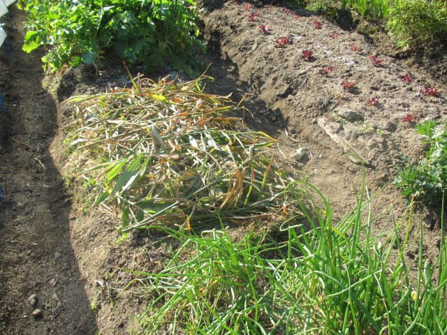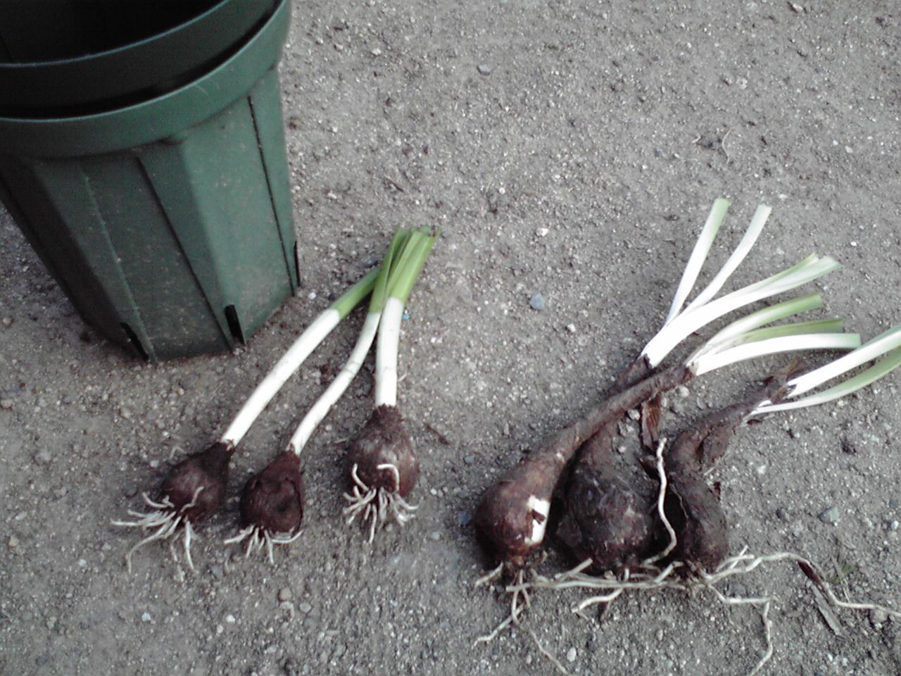 うちの庭の南西の端っこは、日当たりが悪いのに乾燥します。そこには、ほとんど花が咲かない球根が植えられています。葉っぱばかりわさわさして見た目が良くないので、葉っぱを三つ編みにしたりしています。でもそれでは面白くないので、球根を掘り上げて植え替えることにしました。球根の形からして、どうも2種類ありそうです。とりあえず植木鉢に植え付けて、どんな花が咲くのか確認したいと思います。