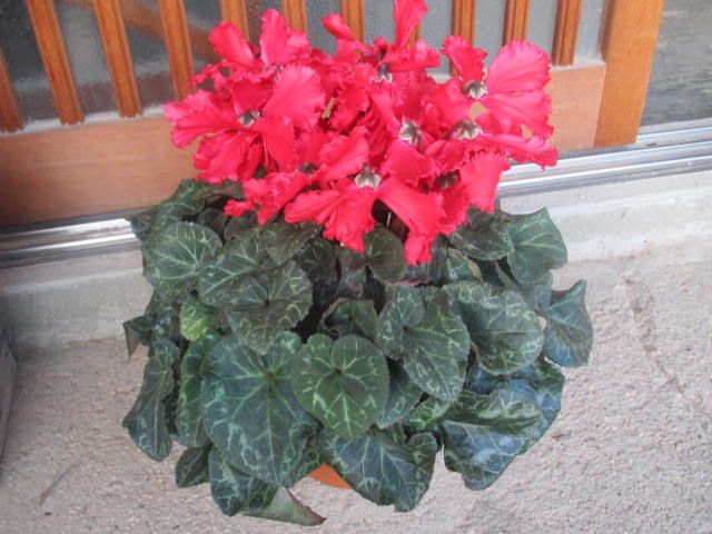 昨日母が買ってきたシクラメンです。うちでは4鉢目となります。とても豪華なフリル咲きです。花はややピンクがかって見えますが、実物は鮮やかな赤い花です。シクラメンのシーズンですね。