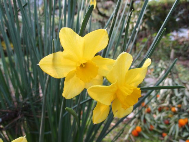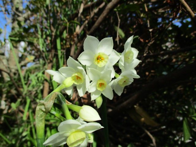 うちの水仙、第三弾です。こちらはニホンスイセンなどと比べると、草丈が低い品種です。ミニラッパスイセンと呼ばれるものに似ています。ここのところの暖かさのお陰か、他の水仙も咲き始めました。