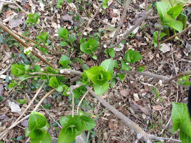 夏、それも梅雨のイメージが強いアジサイですが、葉っぱがこんなにも芽吹いています。つい先日まで寒かったというのに、早いものです。花が咲くのは2ヶ月以上も先のことですが、すでに夏の準備が始まっていますね。