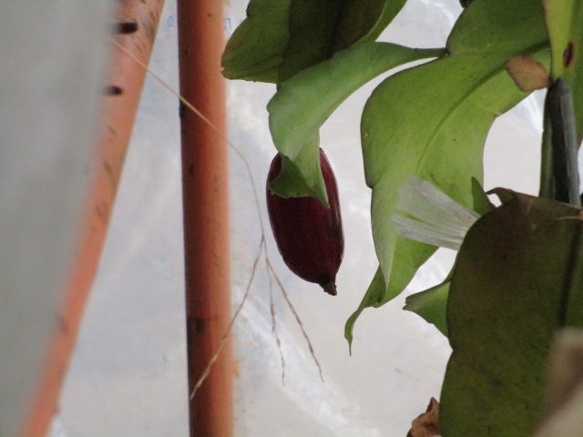 赤黒いものがぶら下がっています。画像では赤黒く見えますが、本当は赤紫色です。温室の奥の方にあるので近付けないのが残念ですが、これはドラゴンフルーツだと思います。世間では「ピタヤ」と呼ばれていますね。去年の秋に、母の友人から挿し芽にしたものをもらったのを忘れていました。今のところ、実は一つだけのようです。↓うちではこちらの園芸用パネルヒーターを使っています。昭和精機 [小型温室用ヒーター]パネルヒーター SPZ-200 サーモスタット ZY-6A付き【smtb-ms】価格:11500円(税込、送料無料) (2018/3/3時点)