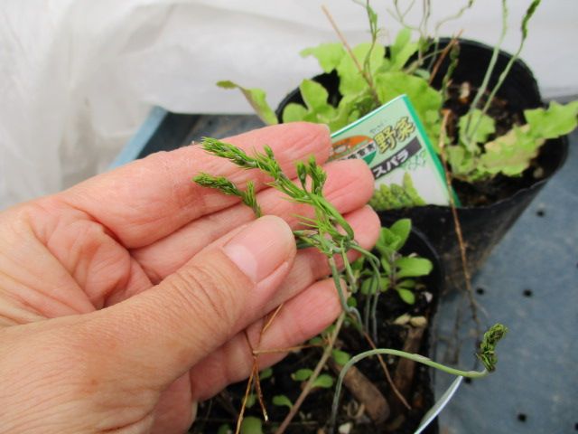去年10月に購入したアスパラガスの苗のポットから、新しい芽が出てきました。まだまだ細い茎ですが、確かに出ています。冬中は枯れ草のようになっていましたが、冬を越すことができたようです。4月になったら、畑に植え付けるつもりです。↓大株苗なら話は早い。アスパラガス 苗 特大株価格:1220円(税込、送料別) (2018/3/21時点)