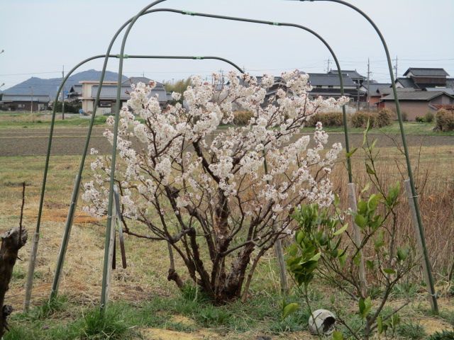 サクランボがほぼ満開になっています。先週の土曜日から人工授粉を始めましたが、ちょっと油断していました。ほら、こんなにも。私が手入れをするようになってから、一番の出来です。すべてが実るわけではありませんが、せっかく咲いた花はできるだけ実ってほしいんです。