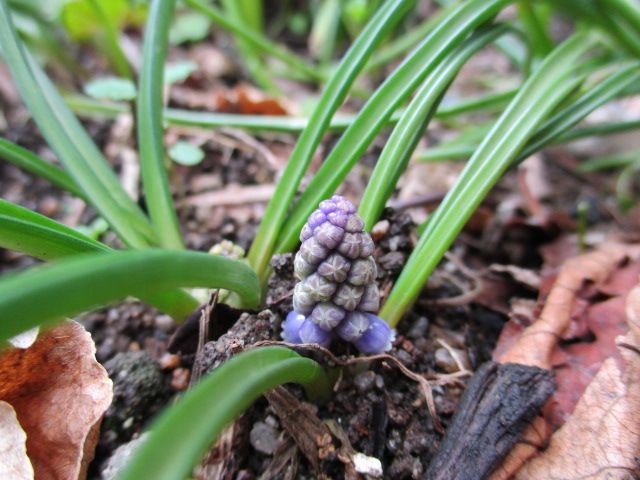 去年の4月に購入したムスカリを地植えにしたのは今年に入ってからです。そのムスカリもようやく少し頭を出しました。日陰で乾燥する場所に花を咲かせたくて植え付けました。ムスカリは日陰でも乾燥しても大丈夫とのことですよ。このまま夏を越すことができるかどうか、見守ります。