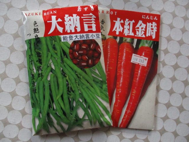 梅雨の真っ只中、みなさんいかがお過ごしでしょうか。蒸し暑いというのに、秋冬の収穫を目指す野菜の準備です。小豆は7月上旬、金時人参は8月上旬に種子をまく予定です。↓正月料理には金時人参が欠かせません。にんじん 種 【本紅金時人参】 8ml ( 種 野菜 野菜種子 野菜種 )価格:303円(税込、送料別) (2018/6/29時点)