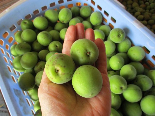 先週末のことです。職場の同僚宅に梅をもぎに行きました。とても大きくて、きれいな梅です。同僚は全く利用しないんだそうです。もったいない。さて、これで何を仕込もうかな。