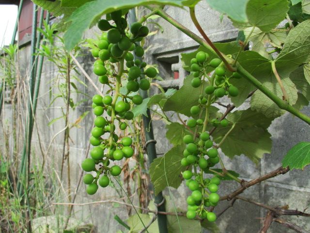 一昨年の1月に地植えにしたブドウに実がなりました。植え付けた年の夏は16日連続で雨が降らず、いろなものが枯れてしまった年でした。そんな年に植え付けたブドウの樹でしたが、枯れずに実を着けてくれました。実は枯れてしまったかと思って、去年も今年も全く肥料を施していませんでした。ごめんね。確か果実袋の買いおきがあったはずなんですが、行方不明です。仕方がないので、新聞紙で簡単な袋を作りました。祖母が元気だった頃、教えてもらった方法です。ブドウは5房。うまくいけば、8月頃に収穫できます。