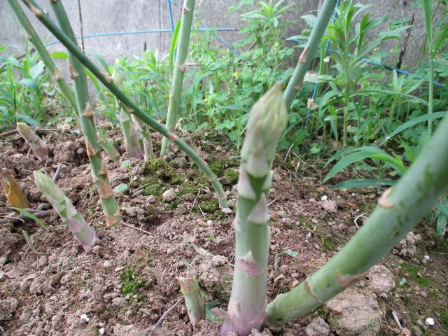 アスパラガスの追肥は1ヶ月ごとにしようと思っていました。そうすると、新しい芽がなかなか出なくなってしまいます。1ヶ月ごとでは足りないということでしょうね。試みとして、約2週間で追肥をして見たところ、出ました出ました。去年は早々に収穫できなくなっていましたが、今年はもうしばらく楽しめそうです。