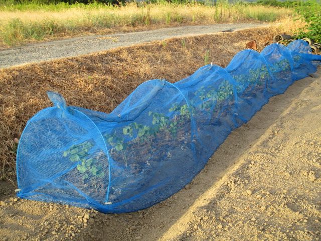 こちらでは直撃は免れていますが、台風が多いです。今週は立て続けに二つも来そうです。植え付けから3週間近く経ち、ずいぶん大きくなったので風を受けやすくなっています。そう言えば、無防備だったためにほとんど収穫できなかった年もありましたしねぇ。これは大変です。ちゃんと防風ネットを張っておかなくては。最近雨が降らないので、土が固くて杭が刺さりません。仕方がないので、曲がる支柱を使ってトンネルにしました。これでなんとかなるといいんですが。↓本当は防獣杭を使ってネットを張りたいんです。イノシシ、鹿、狸の防獣杭 20×1200mm 50本入価格:8500円(税込、送料別) (2018/8/21時点)