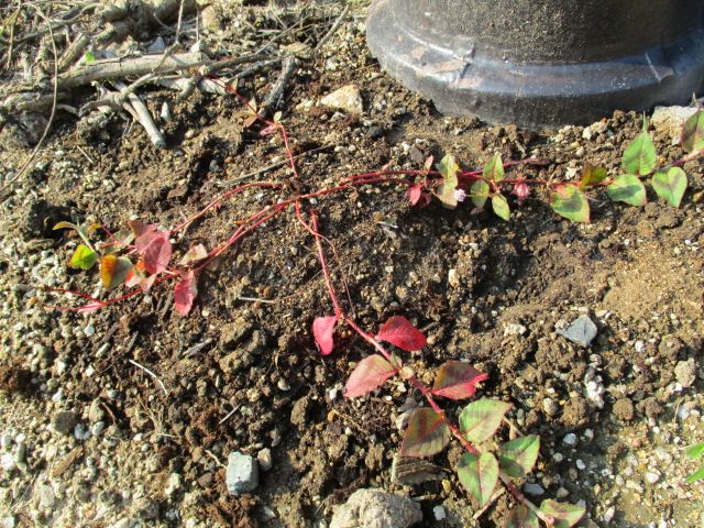 こぼれ種から発芽して、ヒメツルソバがたくさん増えました。いつまでもポットで育てるわけにもいかないので、地植えにしました。株元に近い葉っぱが枯れてしまったようで、枝がひょろひょろです。先端には花も咲いているので、枯れてはいないはずです。根付いてくれることを祈ります。