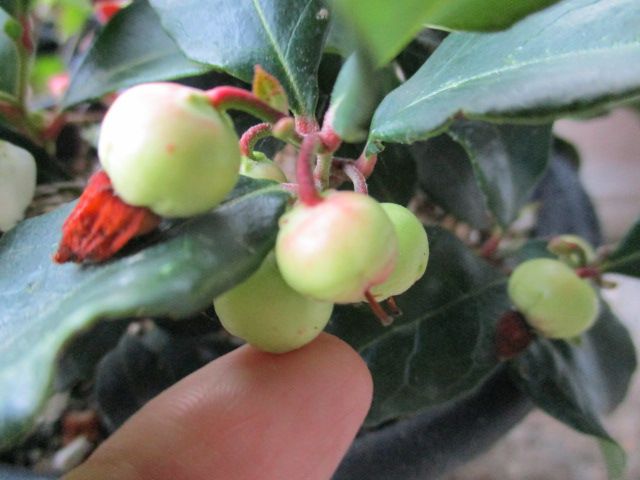 一昨年の年末に母が寄せ植えにしていたチェッカーベリーです。今はチェッカーベリーだけで育てています。気付けば、小さな実がなっていました。新芽も出ています。去年も花が咲いて実りましたが、大きくならないうちに何者かに食べられていまいました。おそらくナメクジでしょう。今年こそは、赤い実が見られることを期待しています。↓退治するなら、これがおすすめです。フマキラー カダン ナメクジ駆除剤 ナメクジカダン誘引殺虫剤 容器設置タイプ(8個入)【カダン】価格:379円(税込、送料別) (2019/7/11時点)楽天で購入