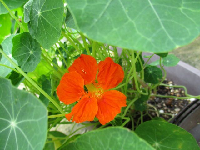 妹からもらったナスタチウムに花が咲きました。植え付けから3週間ほど経っています。鮮やかなオレンジ色が夏らしいですね。当地もそろそろ梅雨明けでしょう。