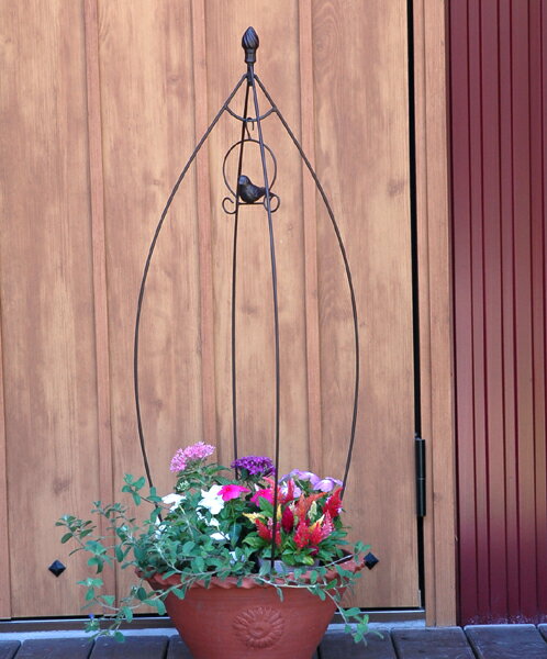 まだまだツルが短いのですが、あんどん仕立てにするつもりで、トピアリーを立てました。