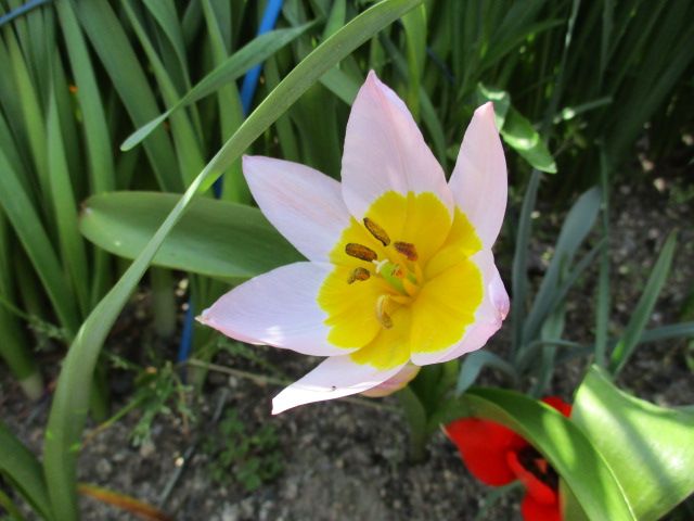 うちで4種類目の原種チューリップ、「ピンク&イエロー」です。