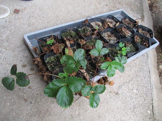梅雨明け直後に畑からうちに 避難 させておいたイチゴの苗です。