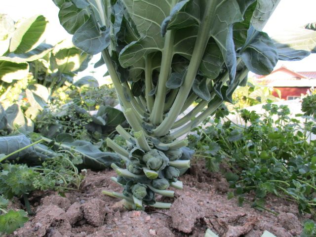 芽キャベツが結球し始めました。